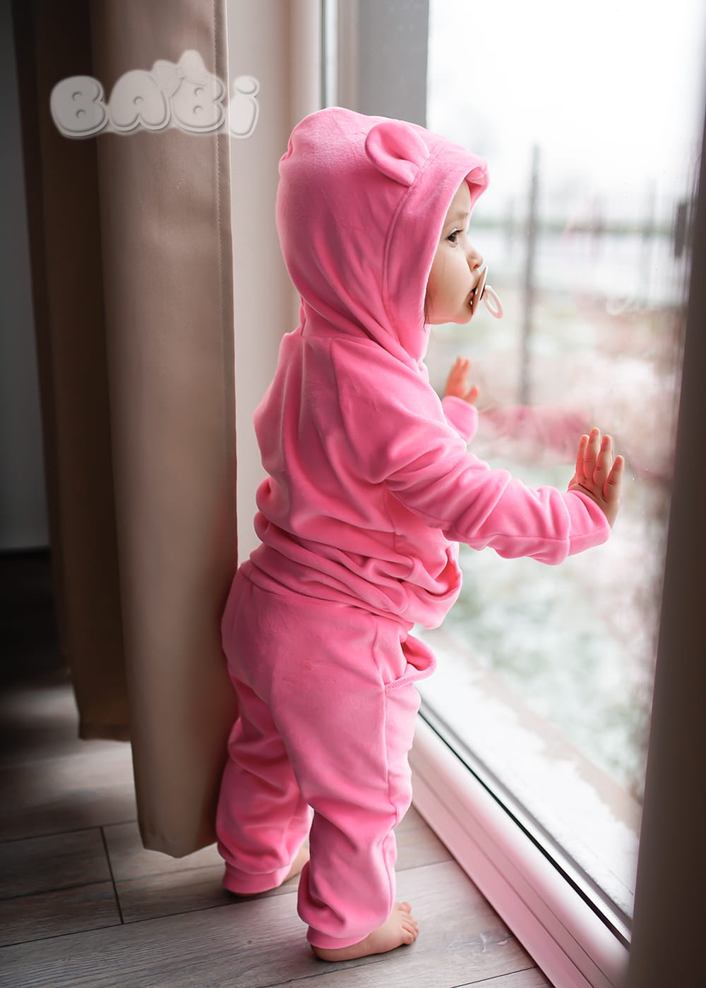 Mięciutka bluza welurowa WKŁADANA PRZEZ GŁÓWKĘ z kapturem oraz słodkimi uszkami misia.