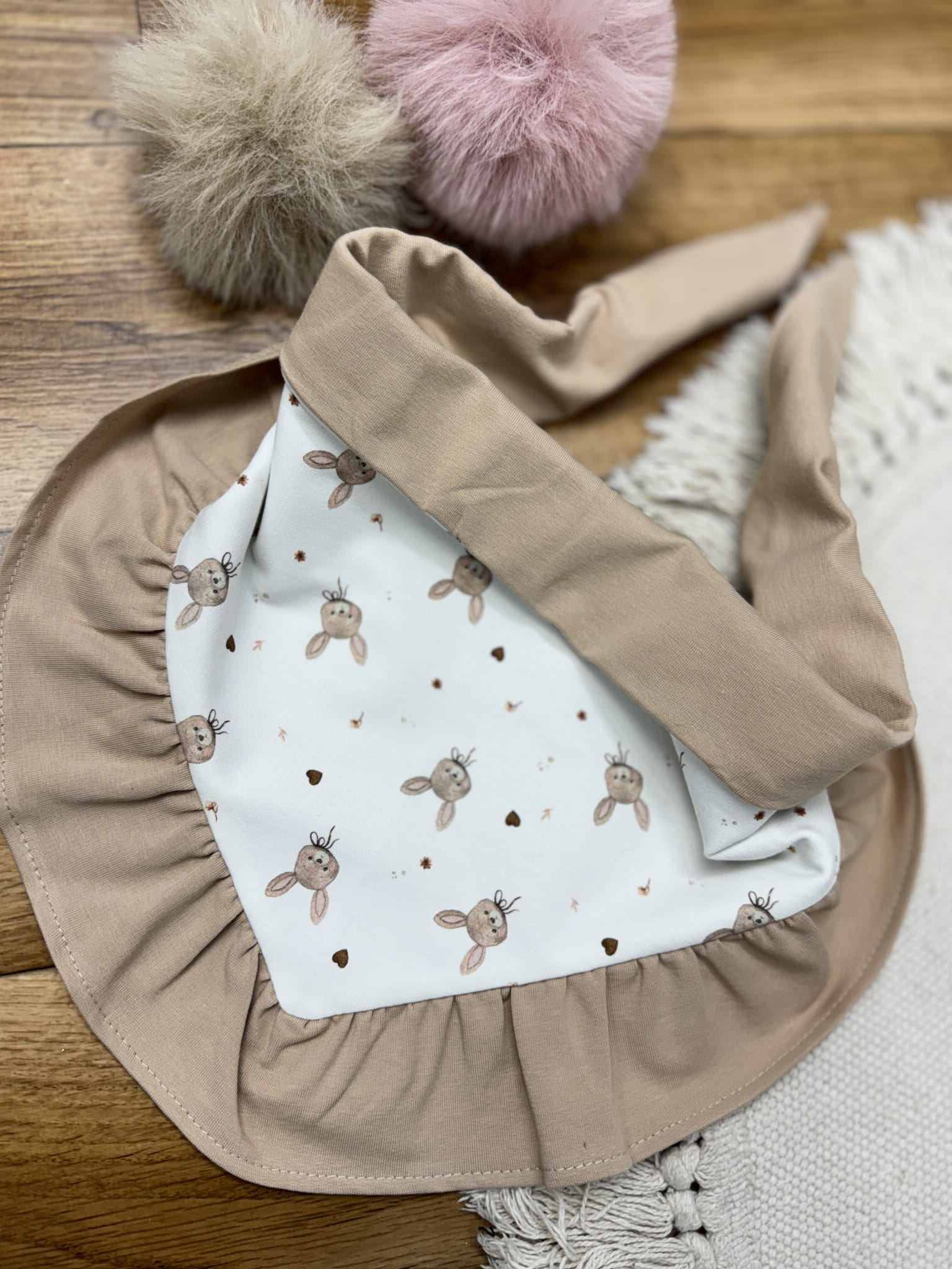 Chusta dziecięca pod szyjkę z beżową falbanką wzór zające rozmiar uniwersalny