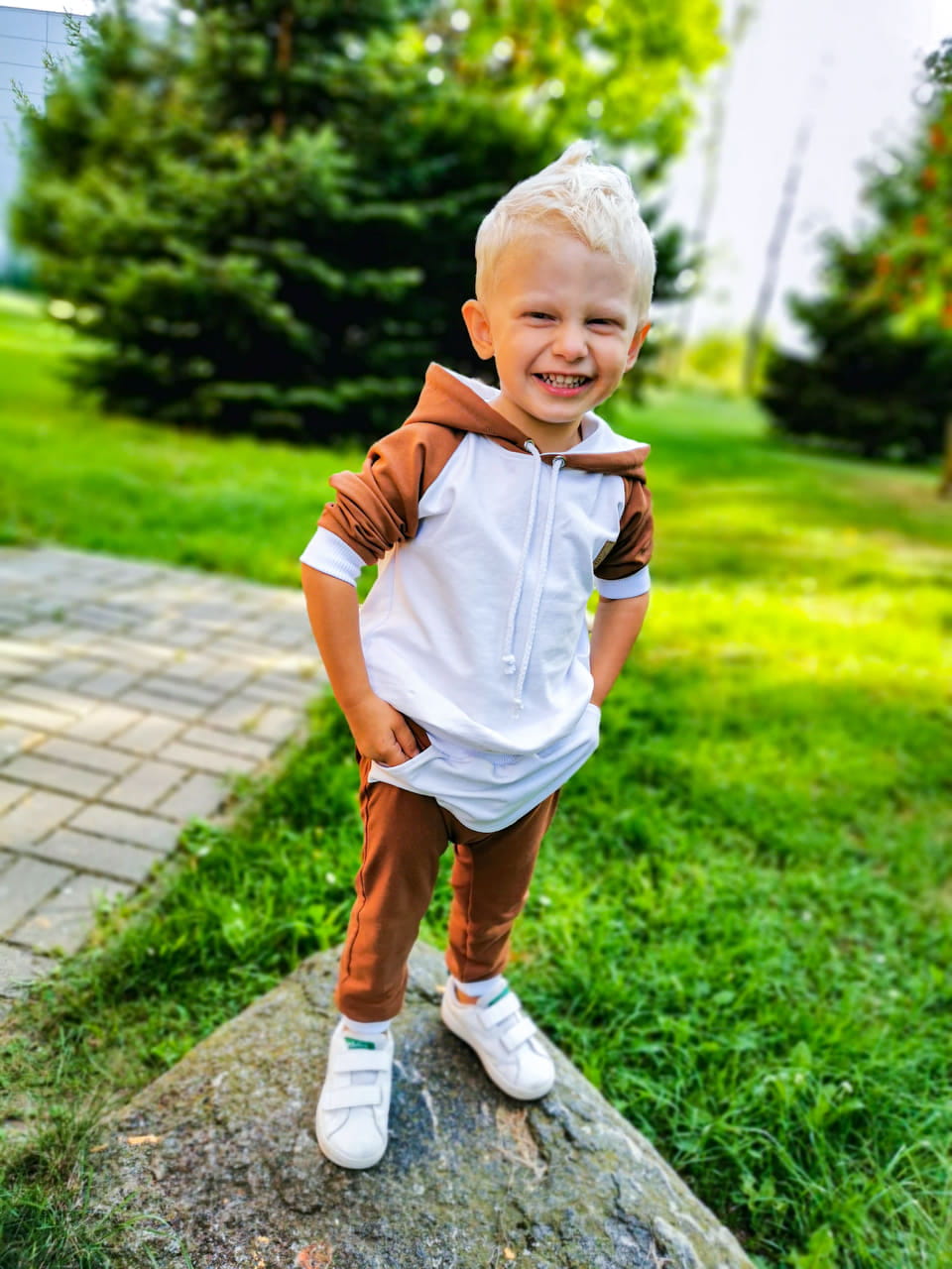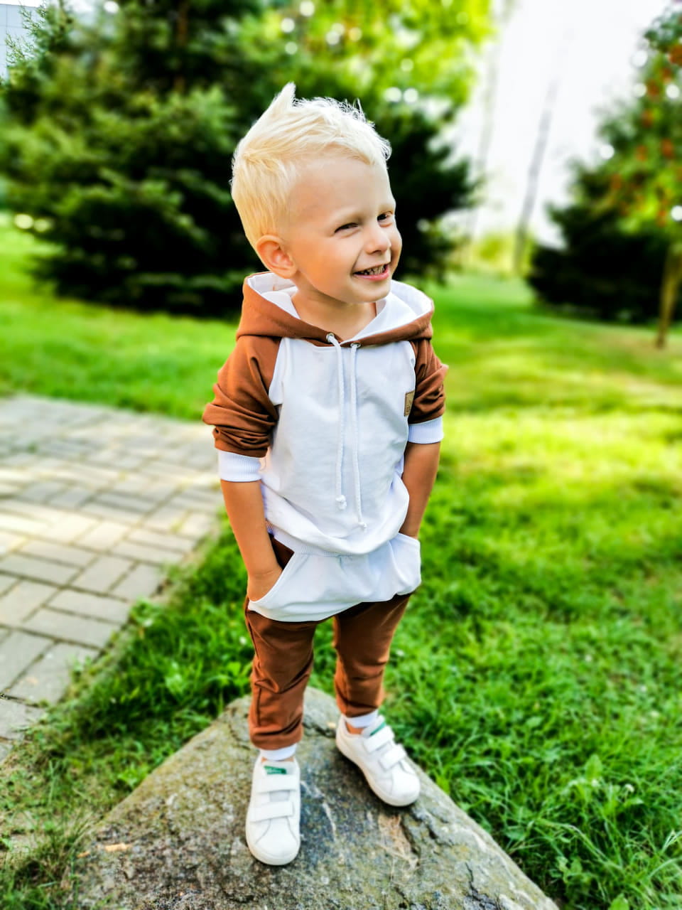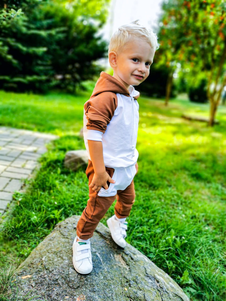 Producent Małgorzata LochertDres dla dziecka IKSO karmel + biel bluza z kapturem -leginsy z lampasem