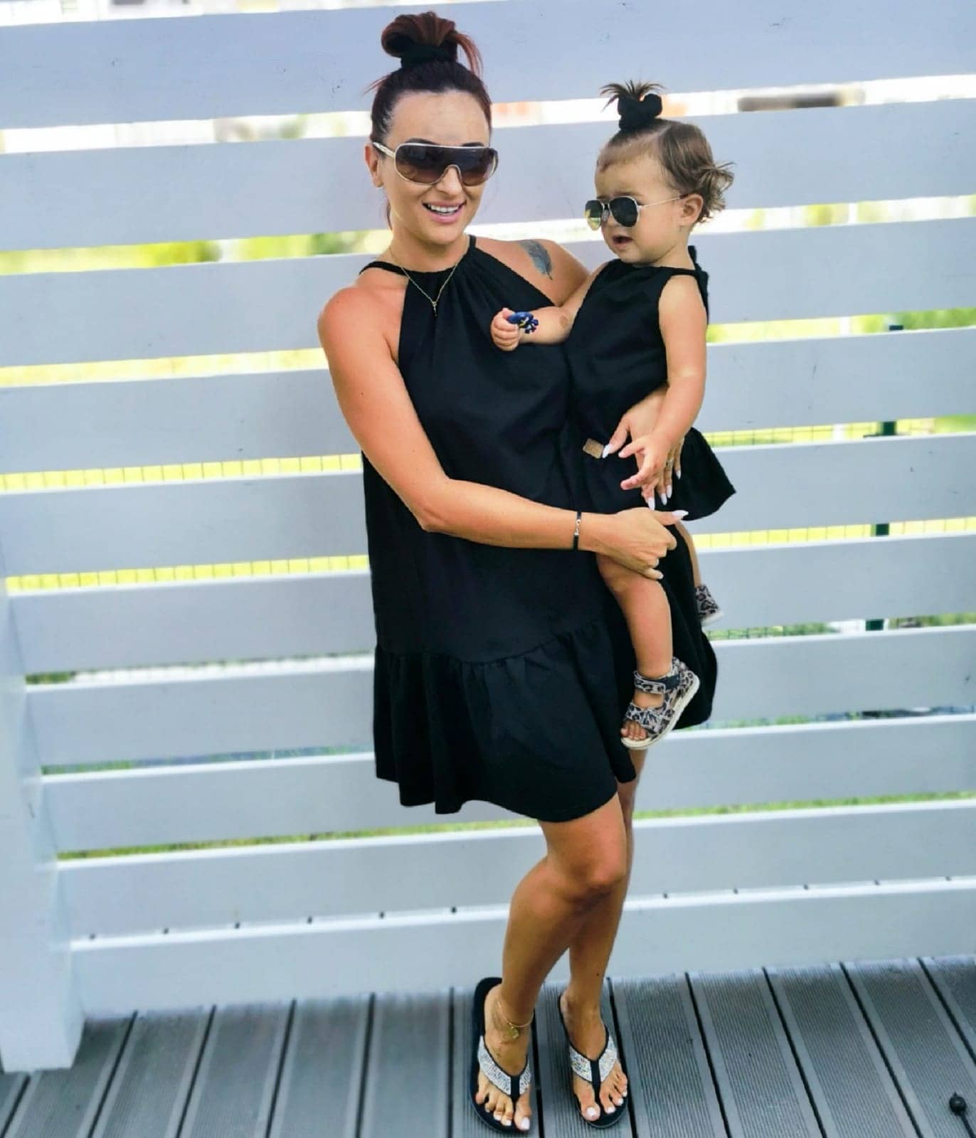 Na sznureczkach zakończone srebrnym dzwoneczkiem . na innej aukcji znajdziesz sukienke dla mamy oraz dla mamy i córki