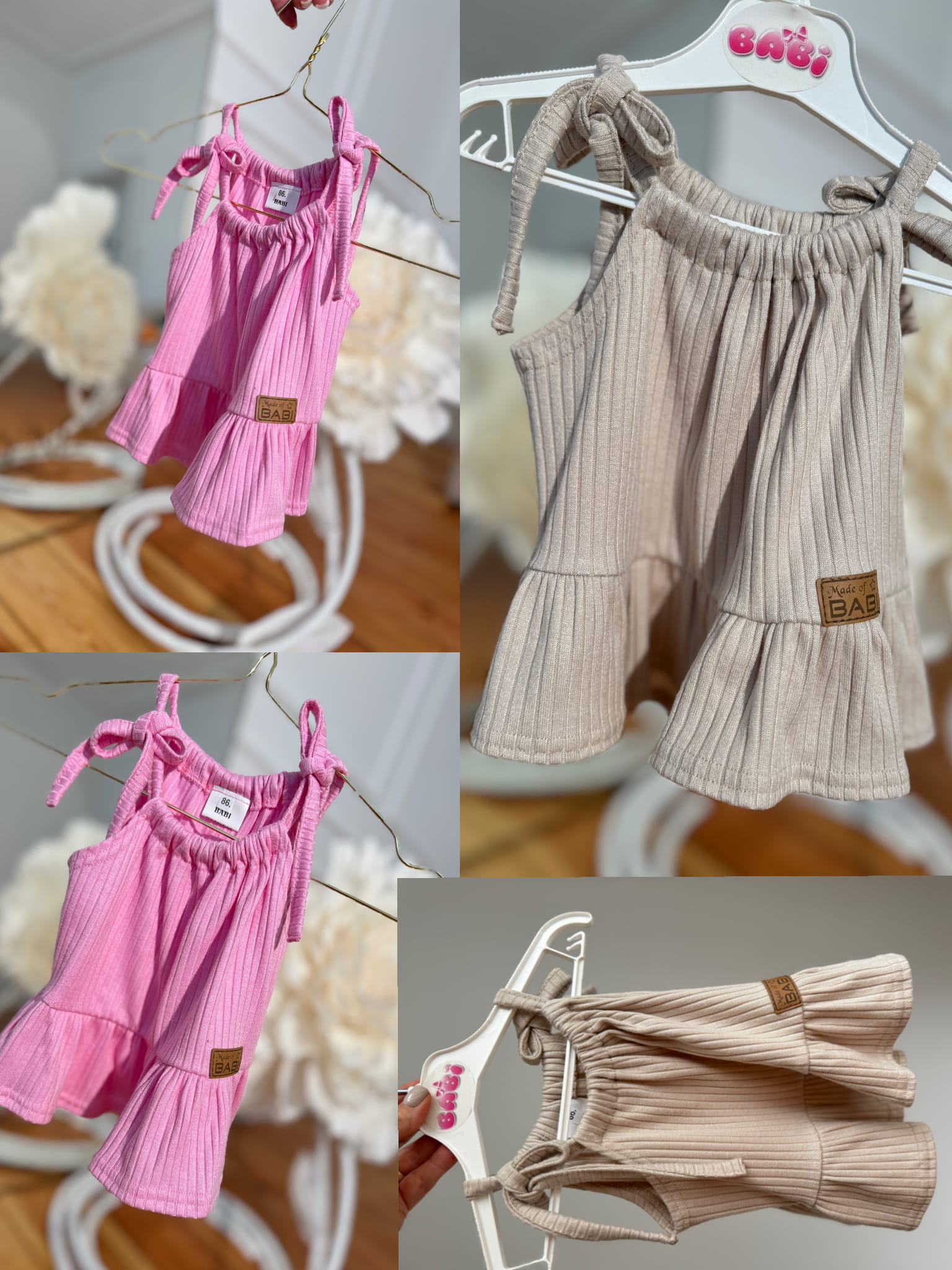 Producent Małgorzata LochertKomplet dla dziewczynki dzwony prążkowane stokrotki na różu plus opaska plus body lub bluzka kremowa prążkowana