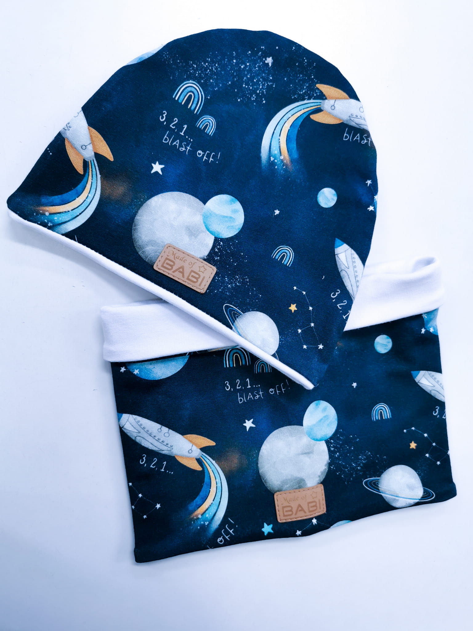 Komplet dziecięcy czapka +komin planety dla chłopca