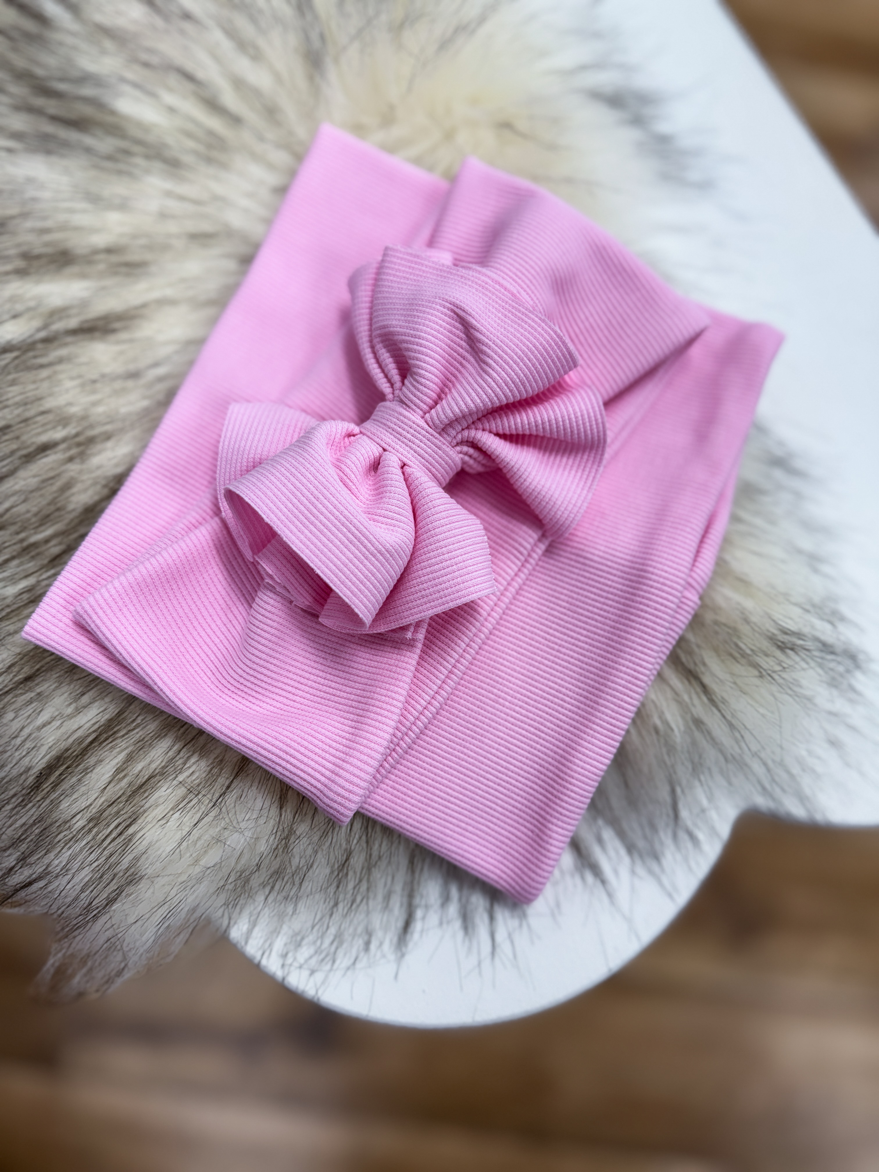 Komplet dziewczęcy opaska szeroka turban plus komin kolor róż jasny