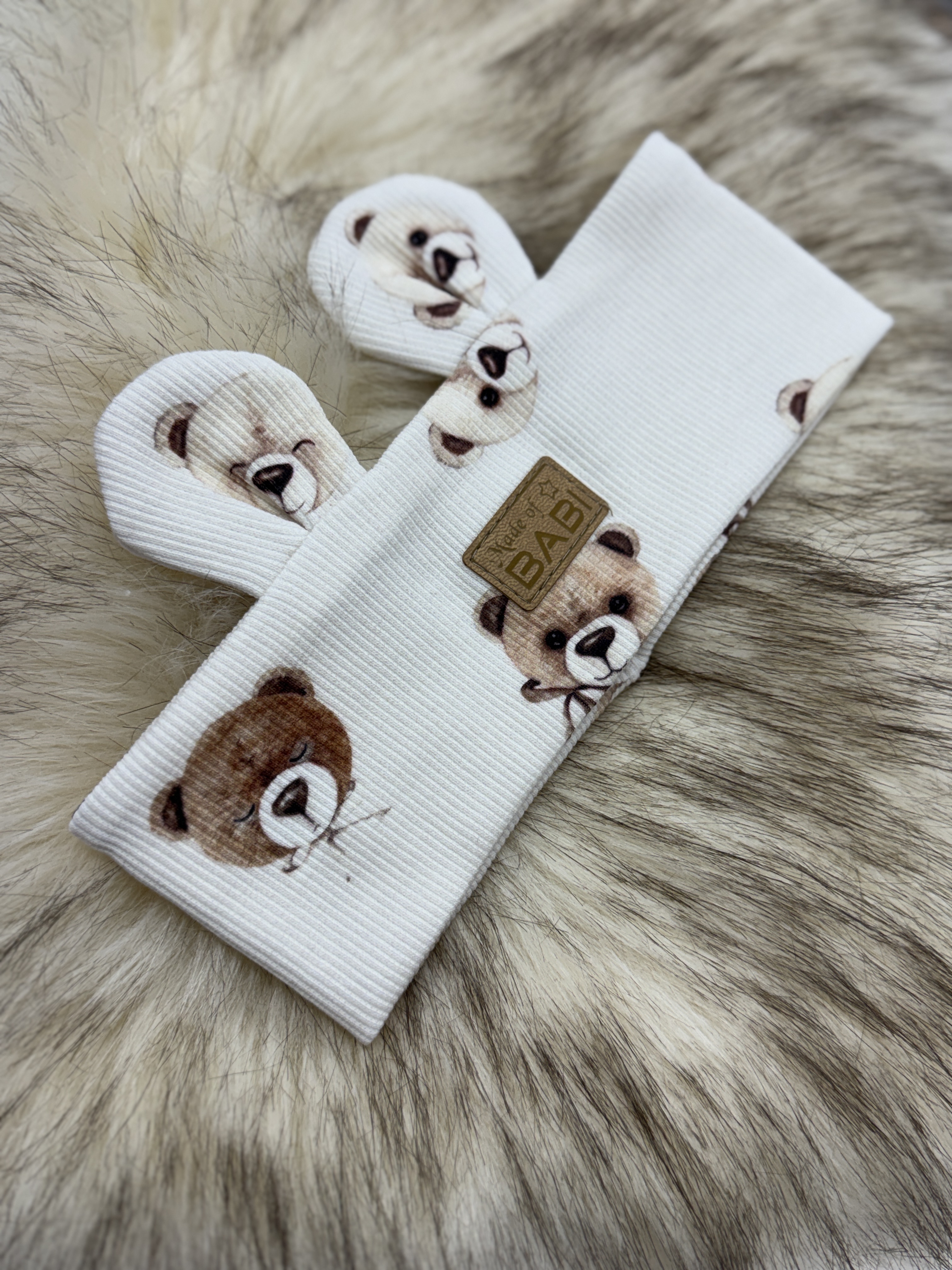 Producent Małgorzata Lochert3 pak dziecięcy komplet czapka opaska komin prążkowany misiowy zawrót głowy na kremowym