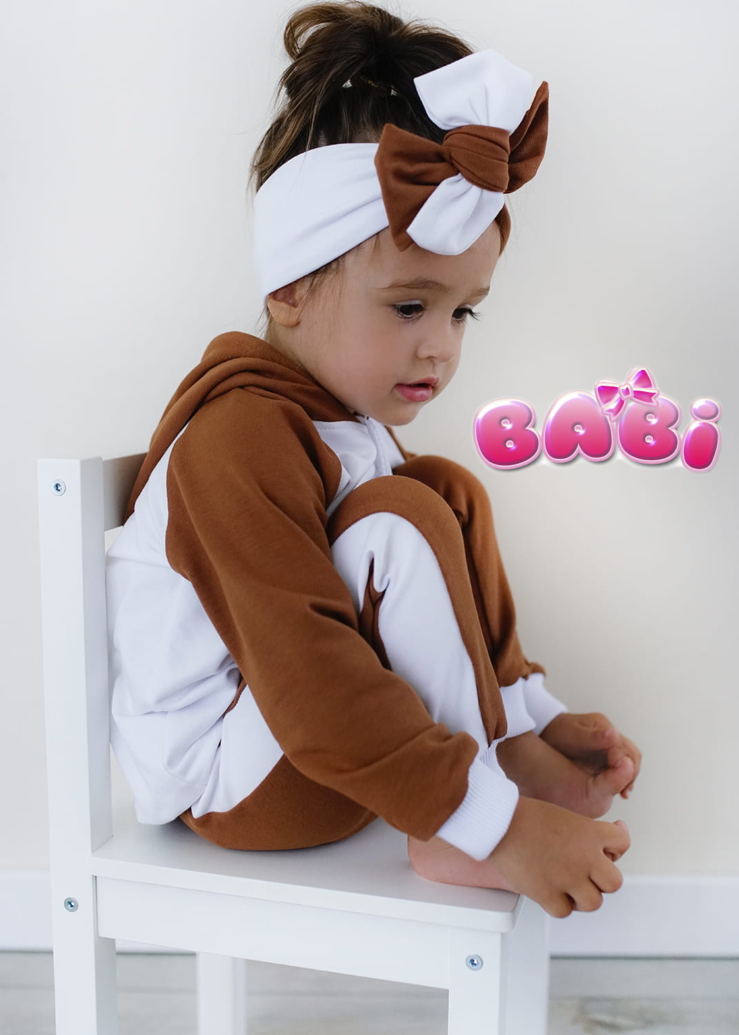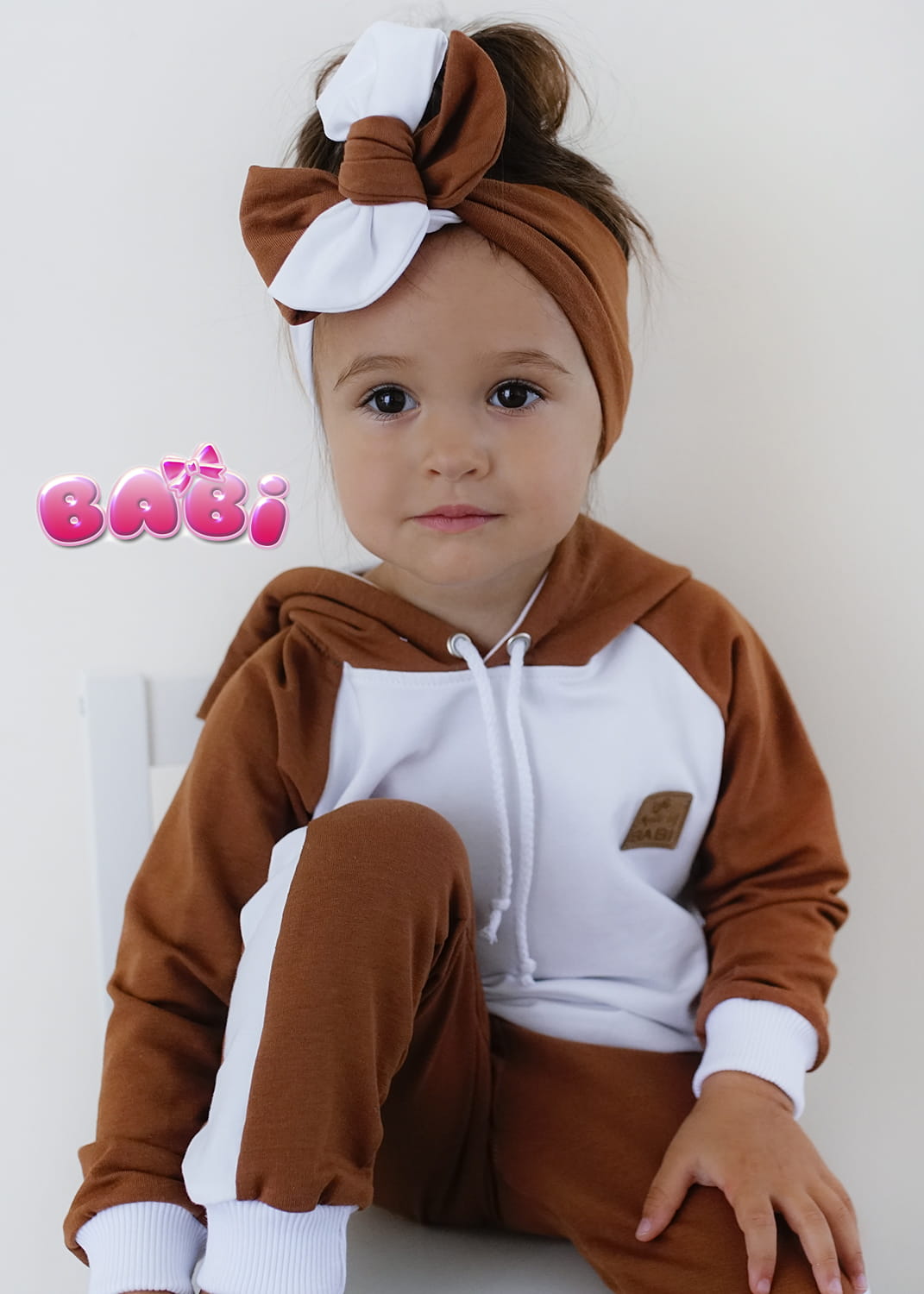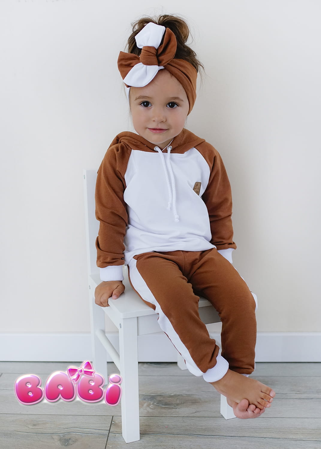 Producent Małgorzata LochertDres dla dziecka IKSO karmel + biel bluza z kapturem -leginsy z lampasem