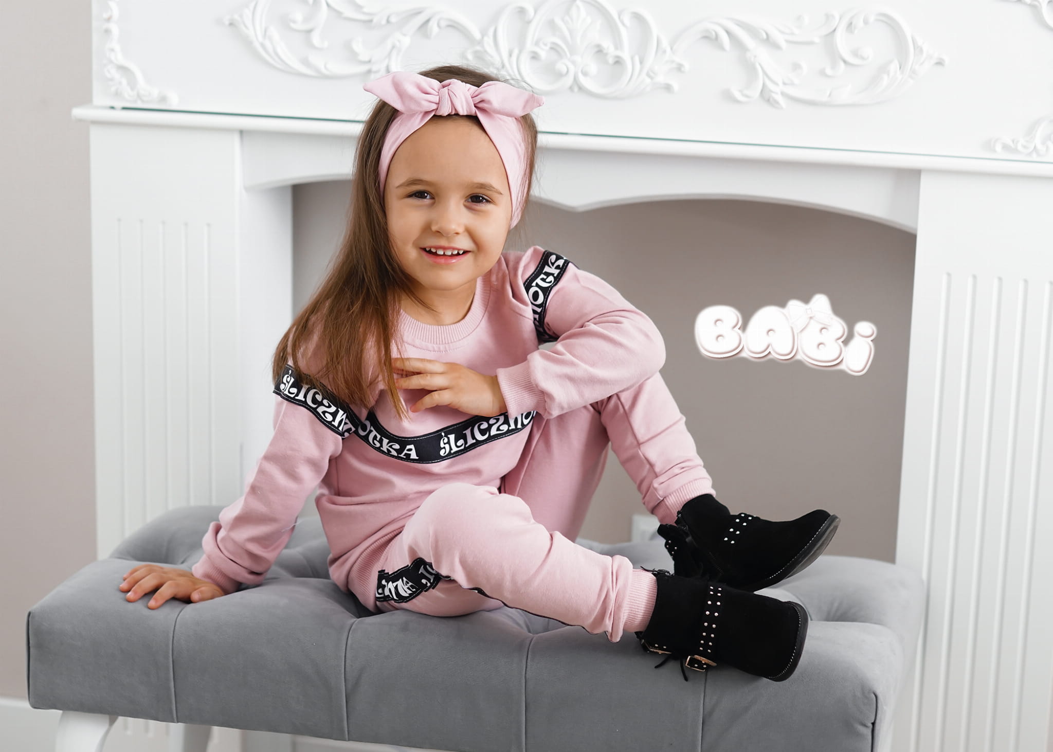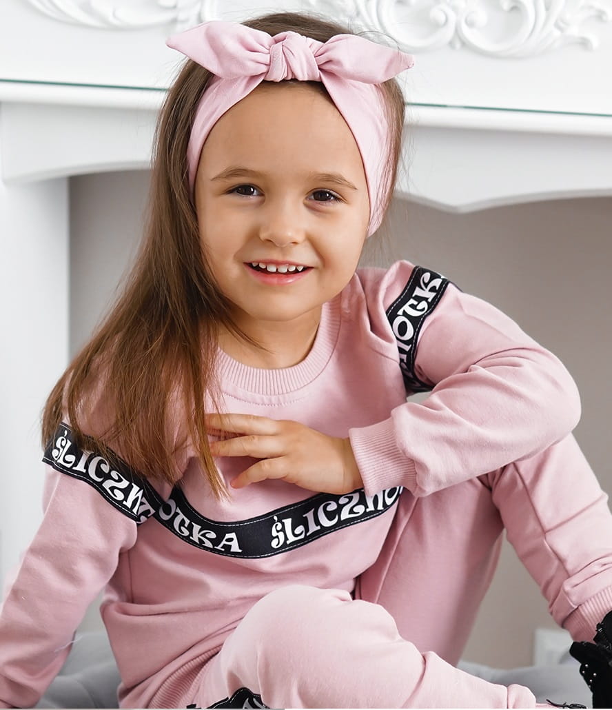 Producent Małgorzata LochertDres dziecięcy spodnie z falbankami plus bluza z falbanką Nina oraz opaska z kokardką