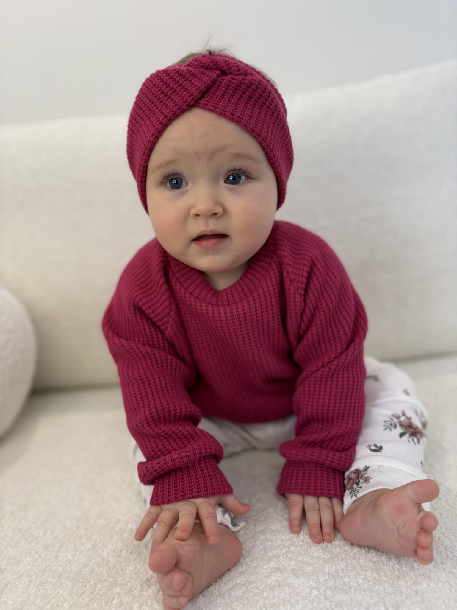 Producent Małgorzata LochertKomplet dla dziewczynki prążkowane dzwony alpaka plus body lub bluzka ze skrzydełkiem kremowe oraz opaska przekładana