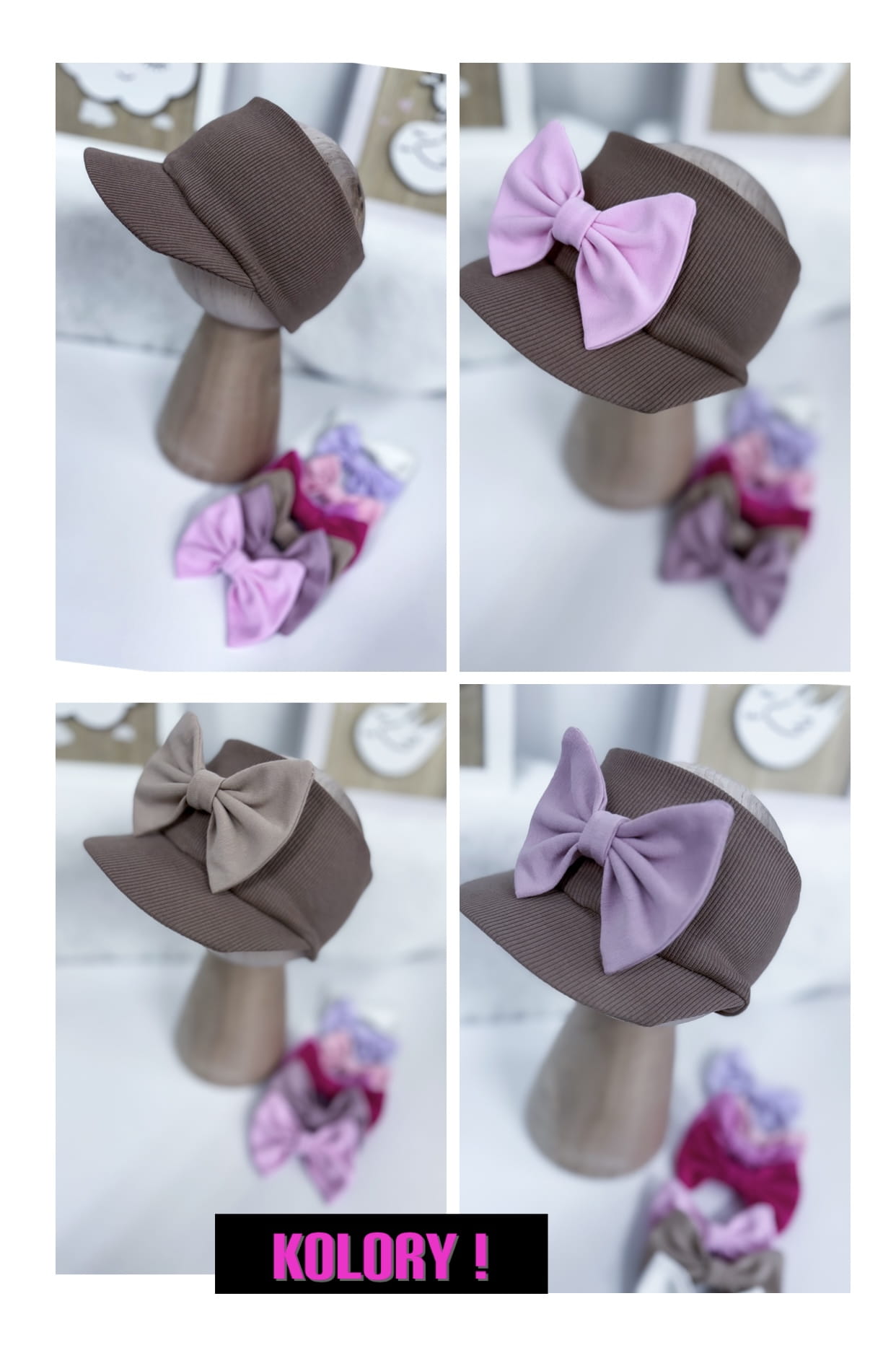 Opaska z daszkiem prążkowana CZEKOLADA z kokardką lub bez