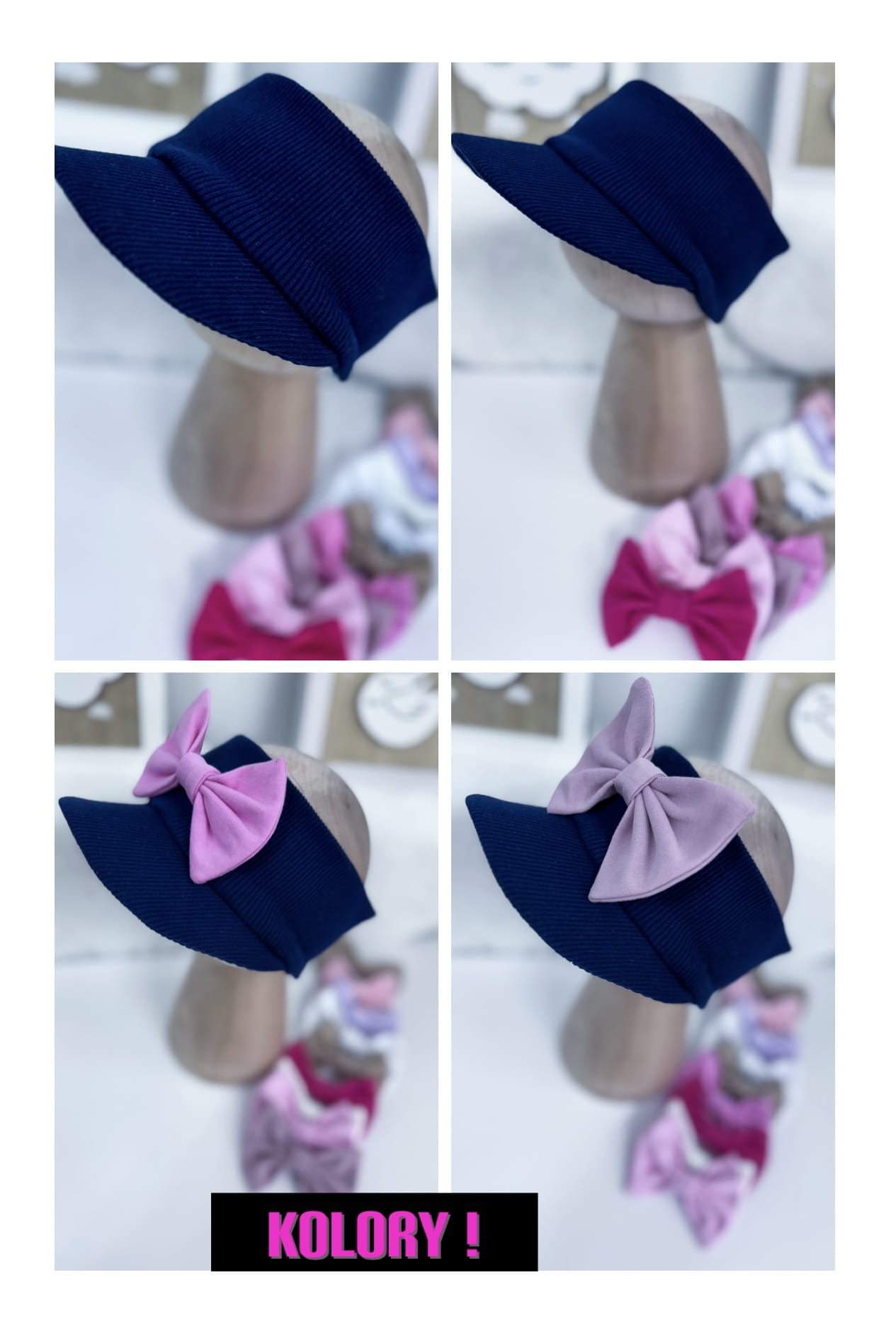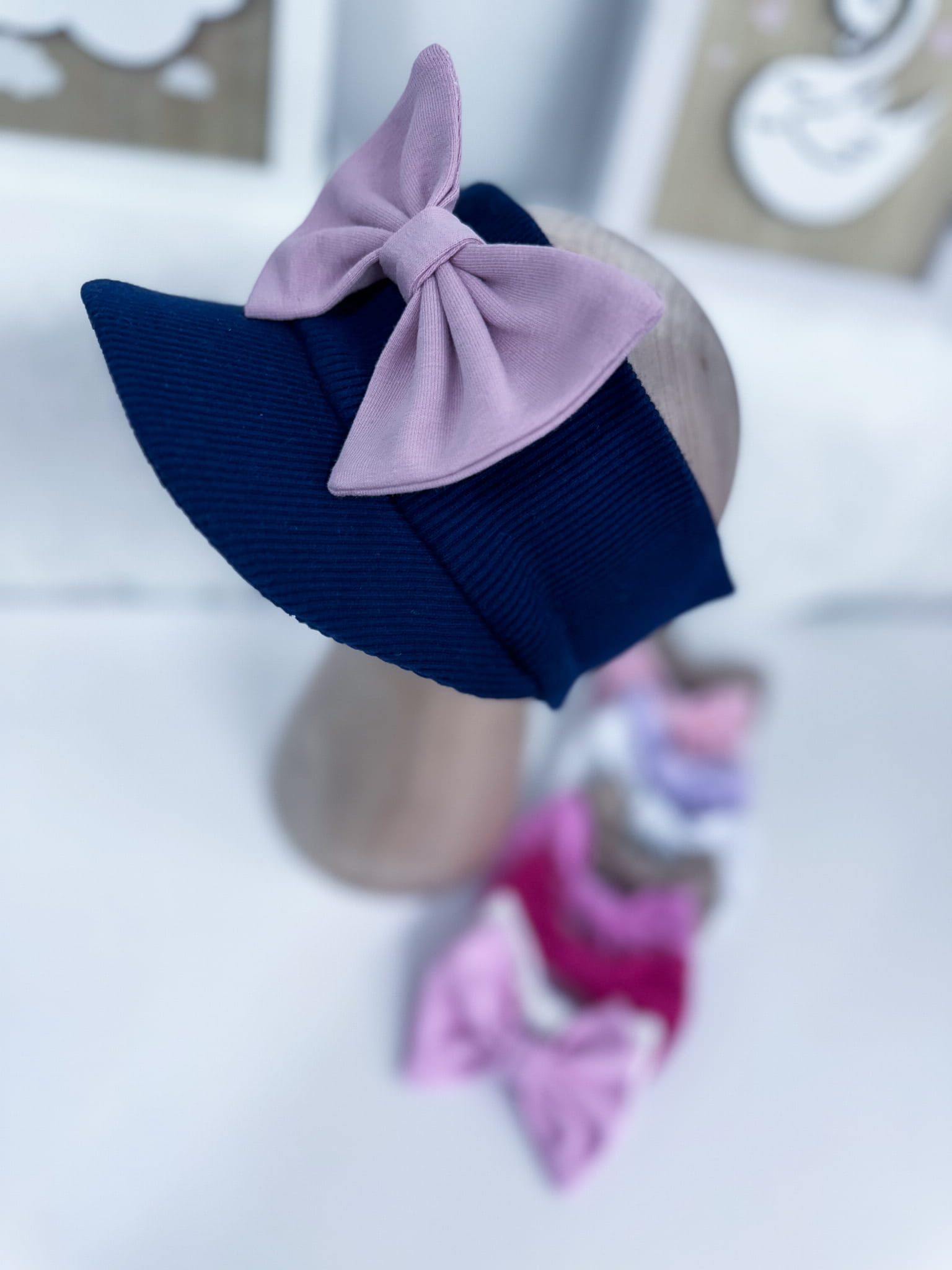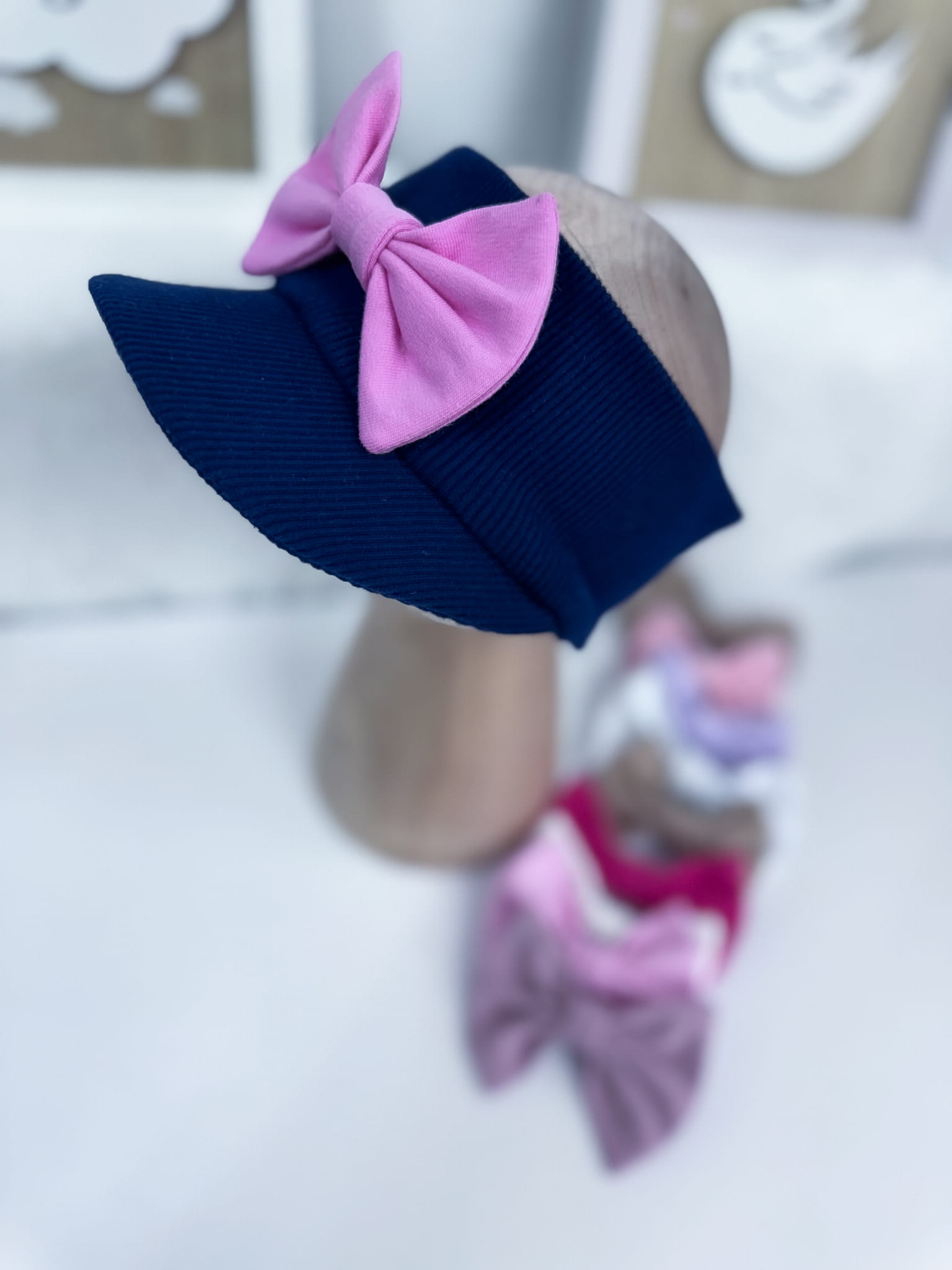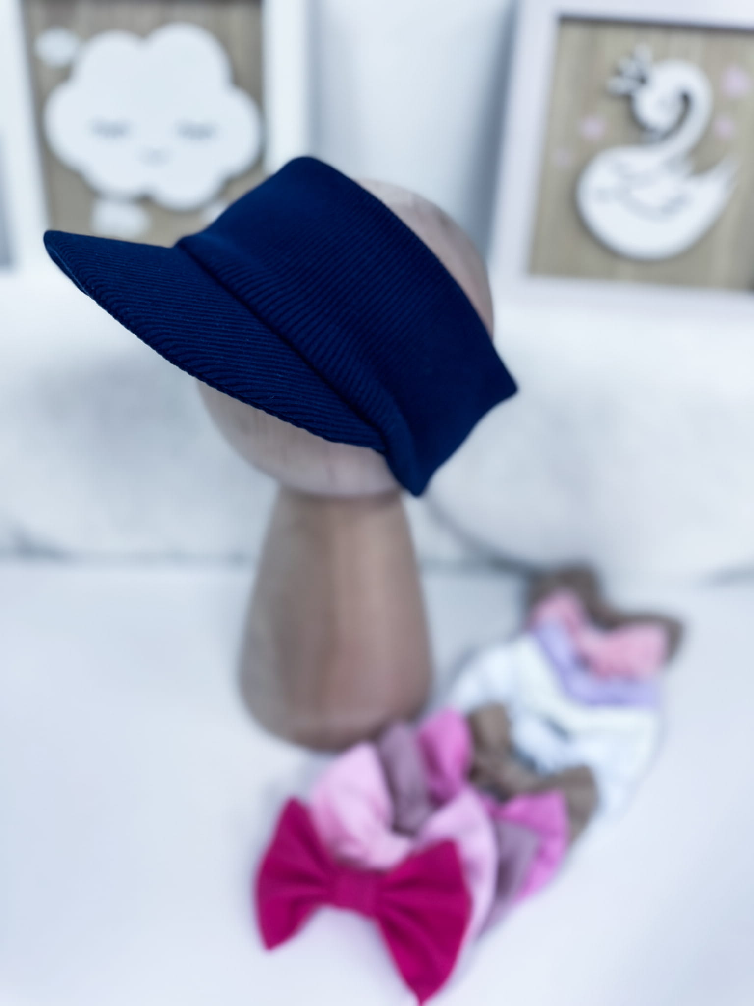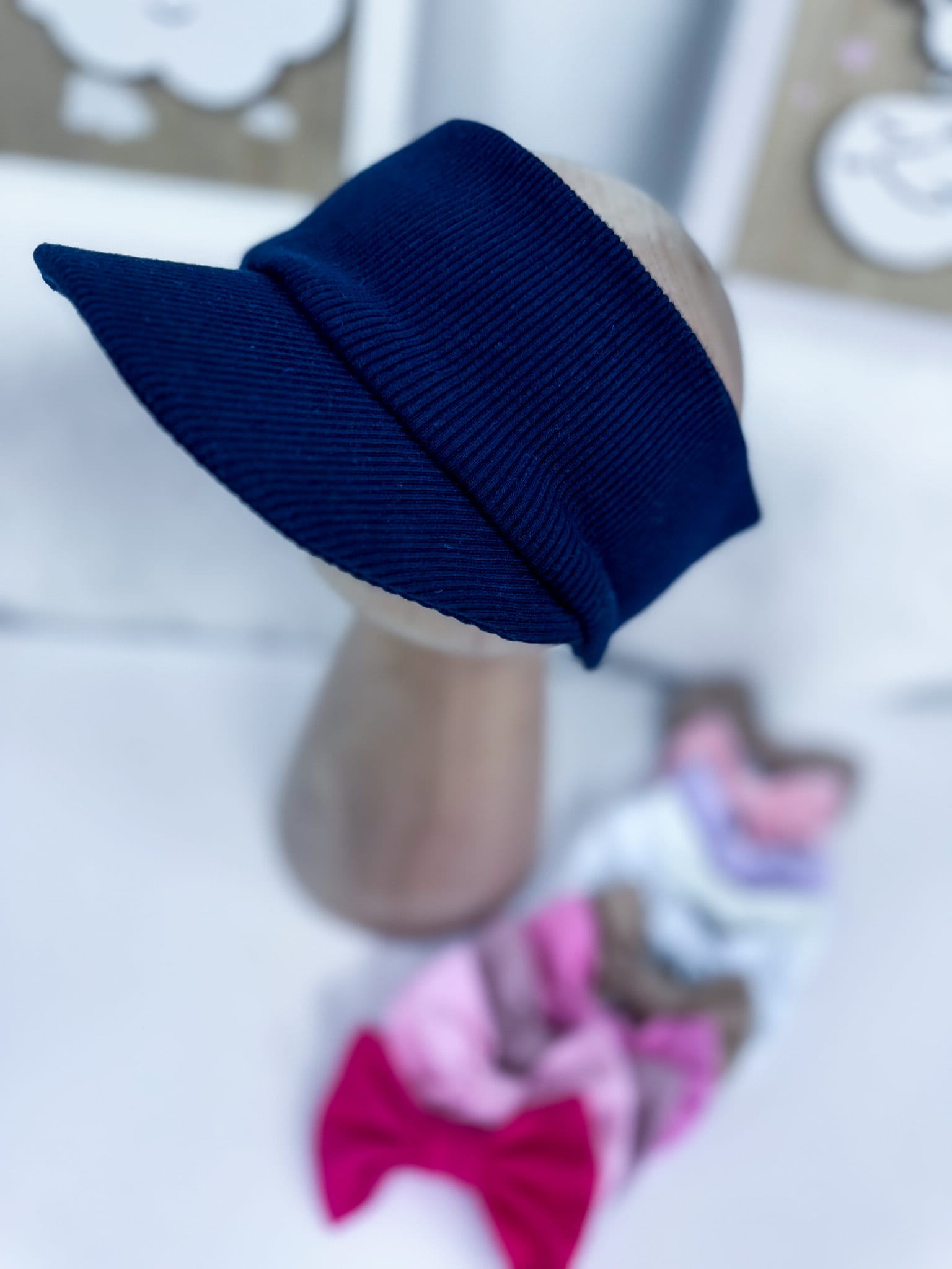 Opaska z daszkiem prążkowana GRANATOWA z kokardką lub bez