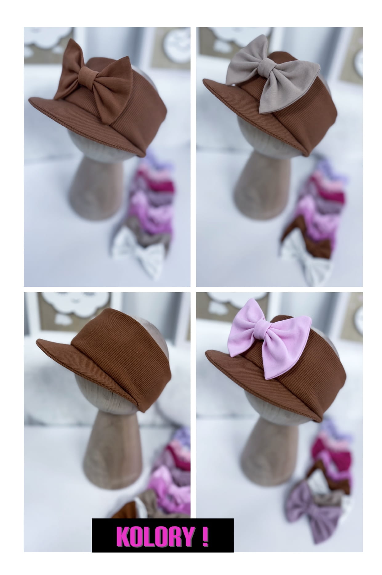 Opaska z daszkiem prążkowana KARMEL z kokardką lub bez