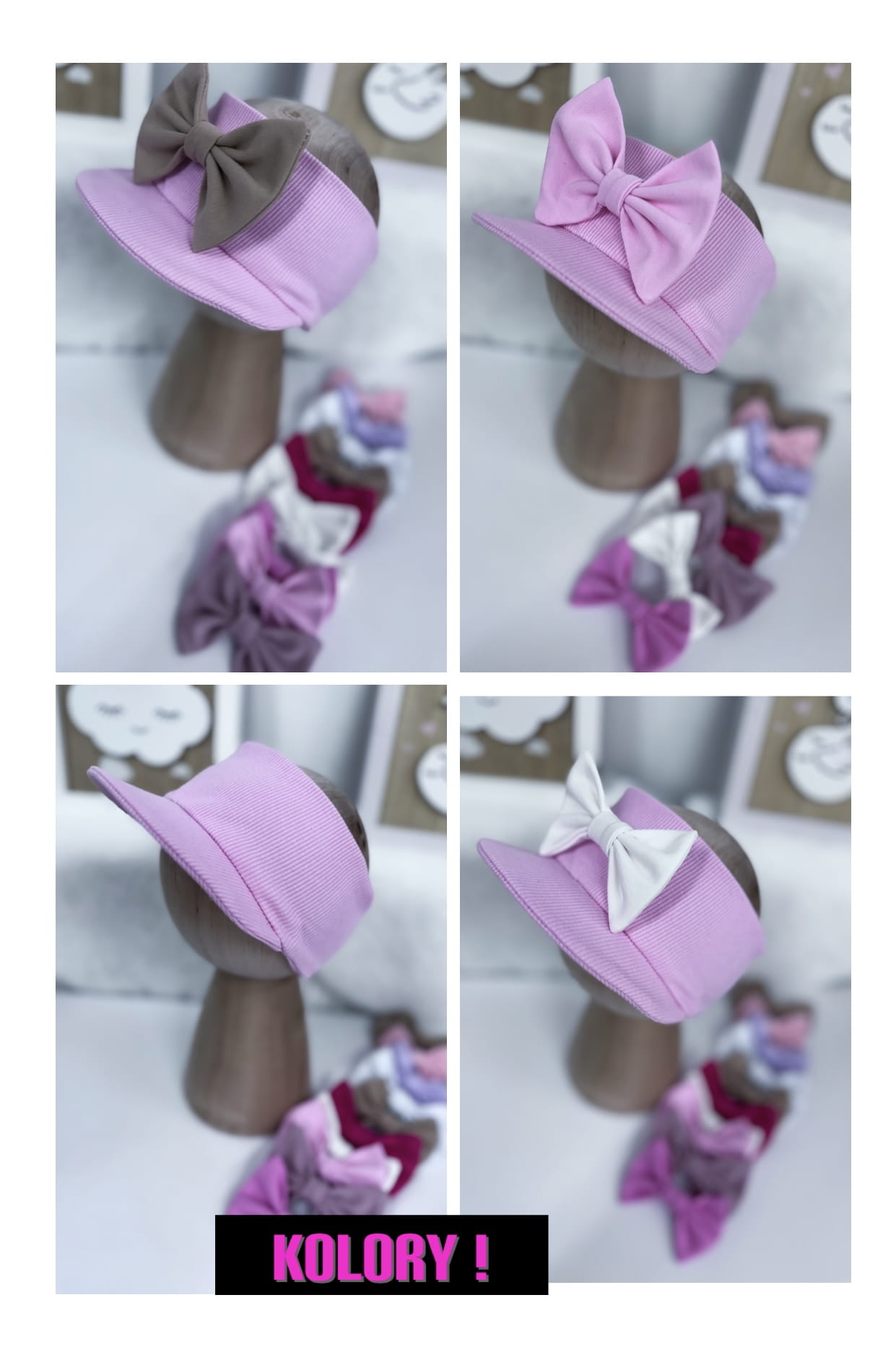 Opaska z daszkiem prążkowana RÓŻ JASNY z kokardką lub bez