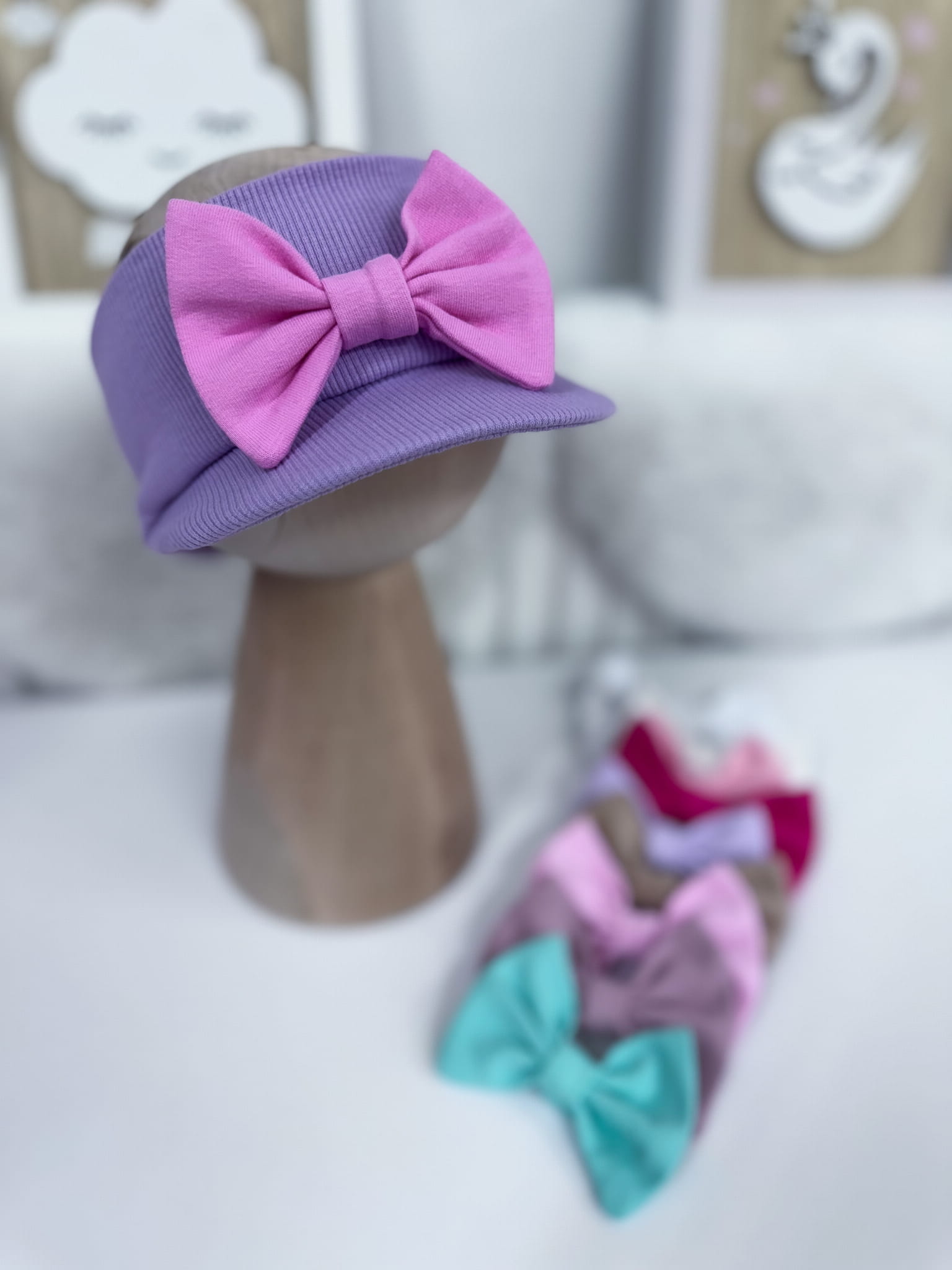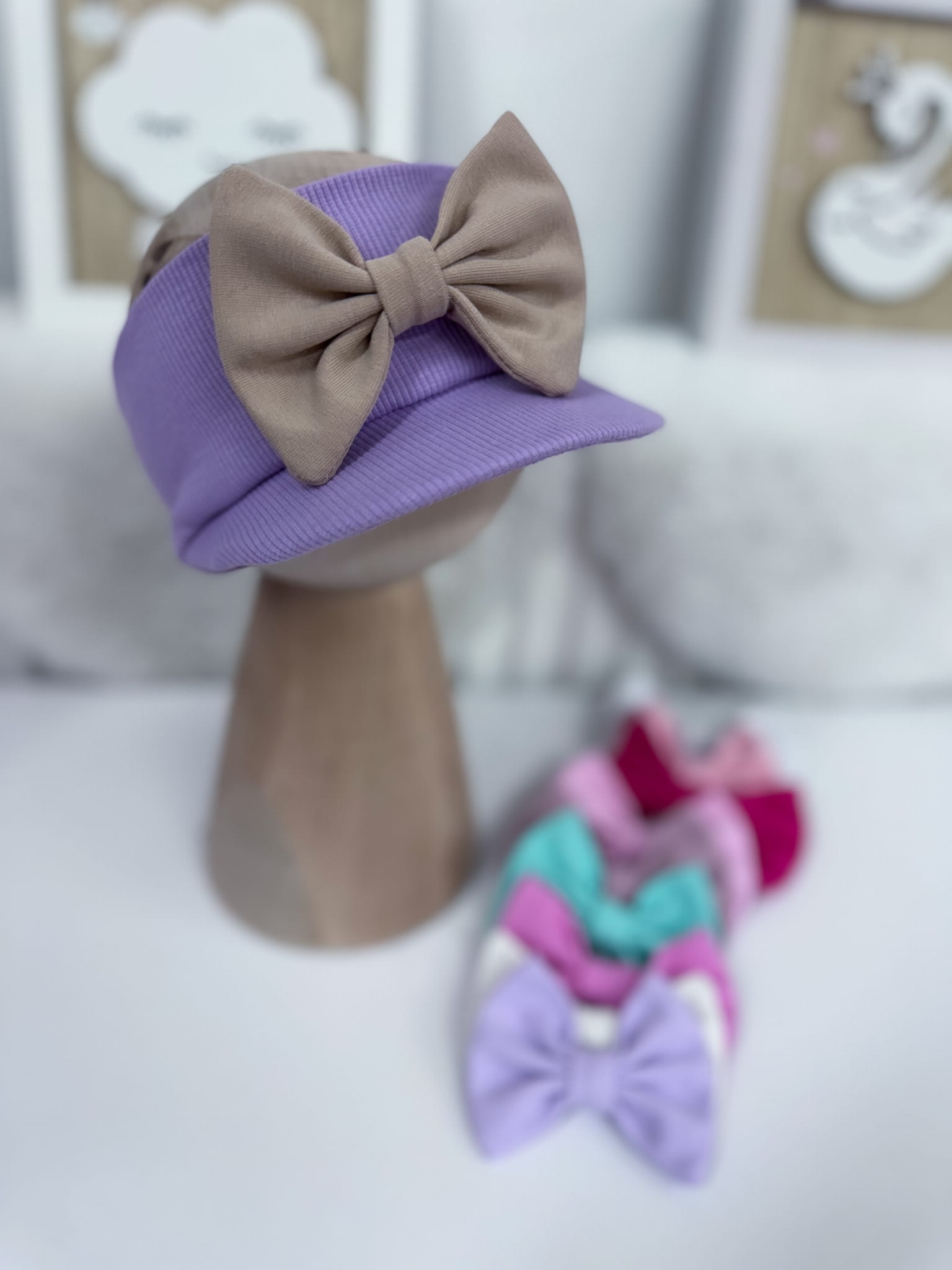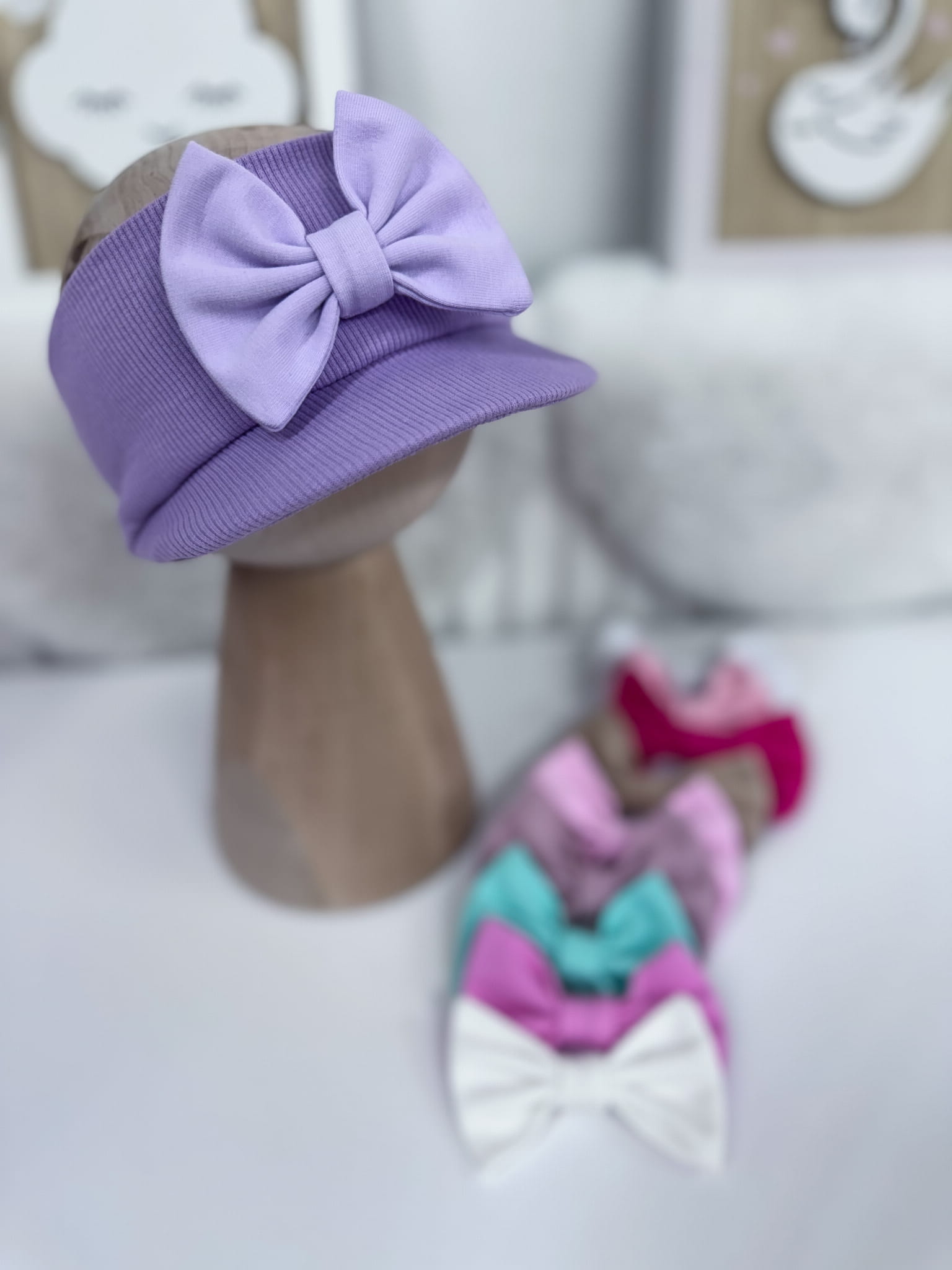 Opaska z daszkiem prążkowana WRZOS z kokardką lub bez
