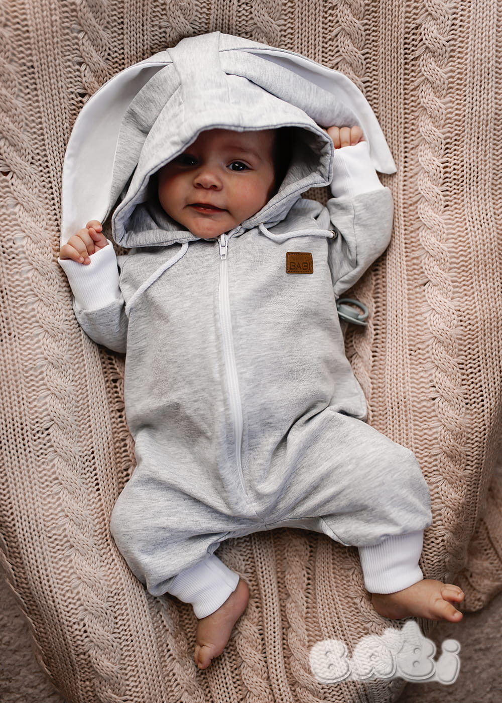 Pajac niemowlęcy z uszami zająca szary+ biały