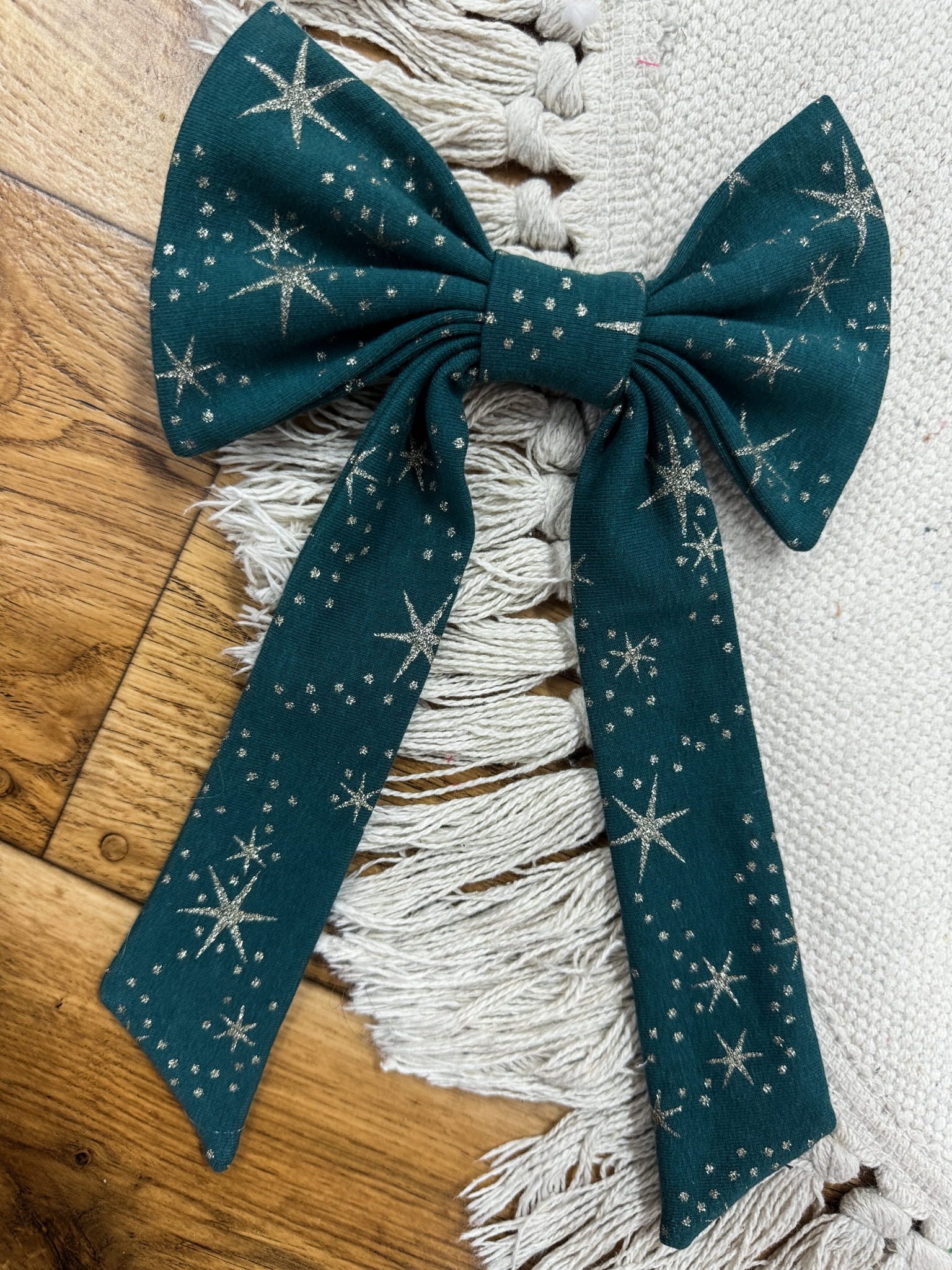 Piękna duża spinka złote gwiazdki na zielonym świąteczna dla dzieci i dorosłych