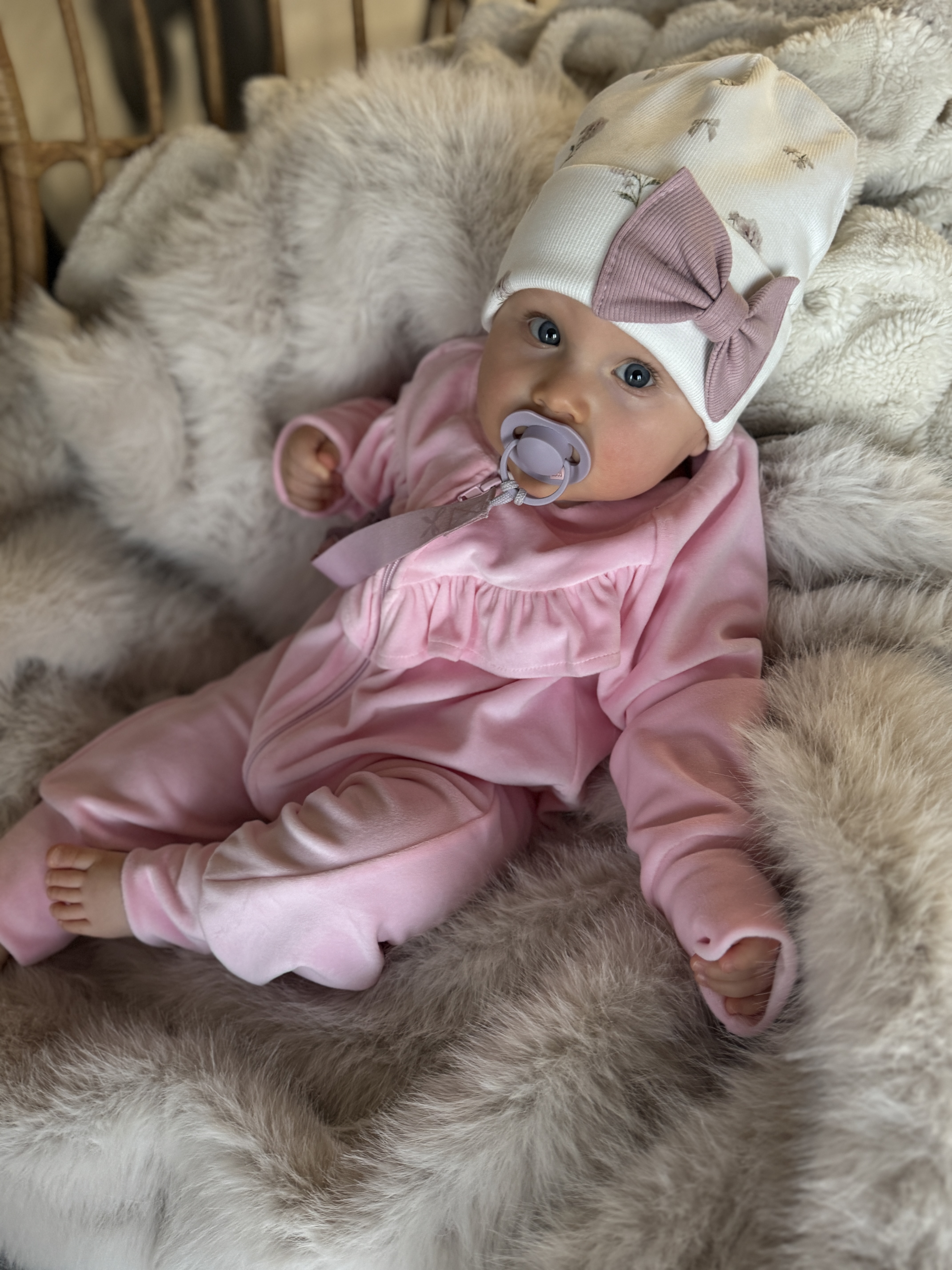 Welurowy pajac dziecięcy z falbanką bez kaptura kolory do wyboru