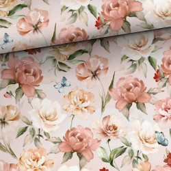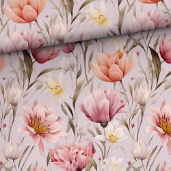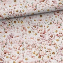 Producent Małgorzata LochertKomplet dla dziewczynki dzwony prążkowane stokrotki na różu plus opaska plus body lub bluzka kremowa prążkowana